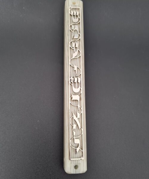מזוזה פלסטיק לבן וכסף