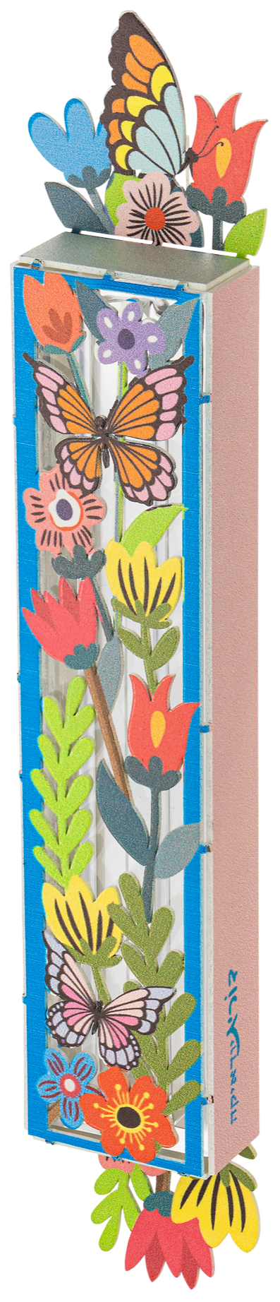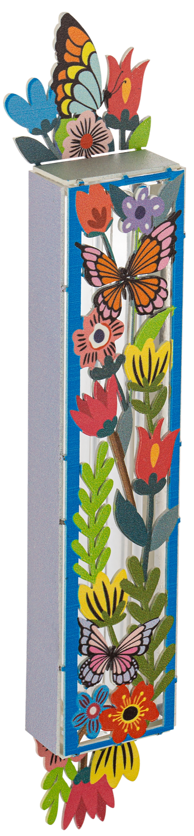 בית מזוזה מעוצב פרפרים ופרחים – מתנה יפה לבית