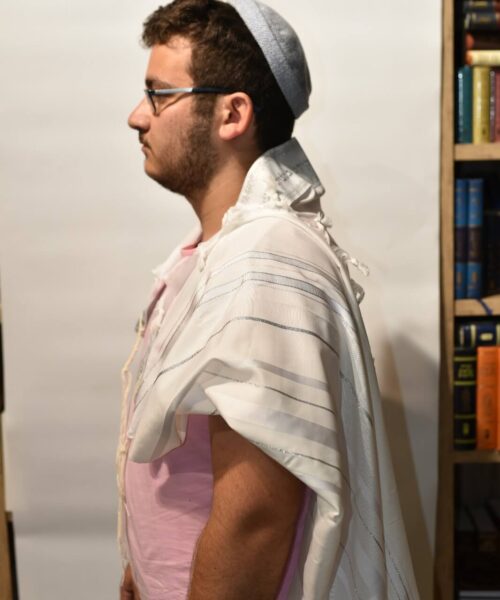 טלית אקרילן פסים לבן וכסוף