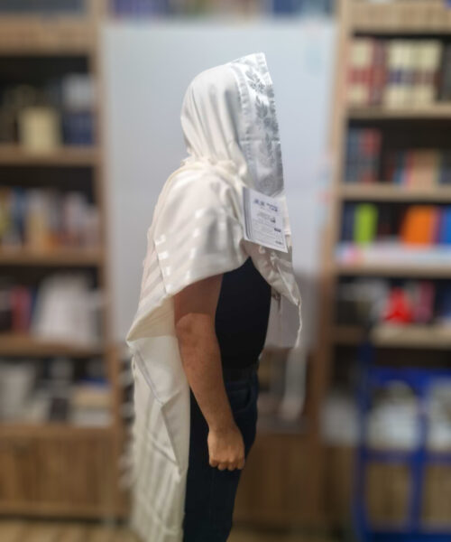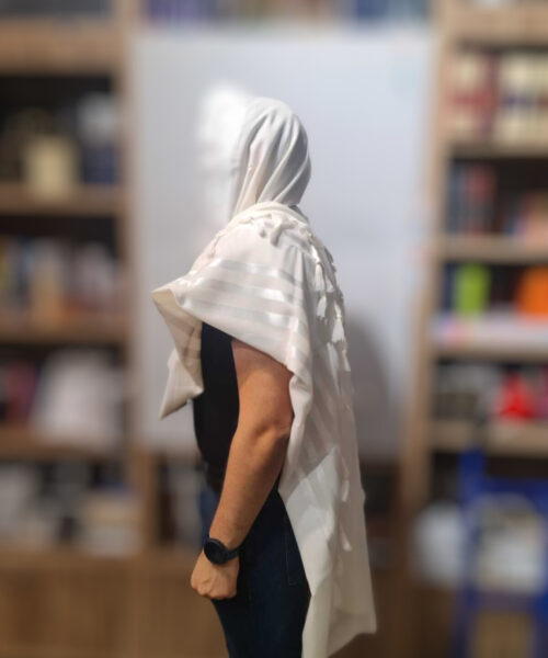 טלית צמר א.א לבן
