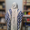 טלית 100% צמר א.א. קיים עם פסים בצבעים: לבן, שחור, כחול ובמידות: 50, 60, 70