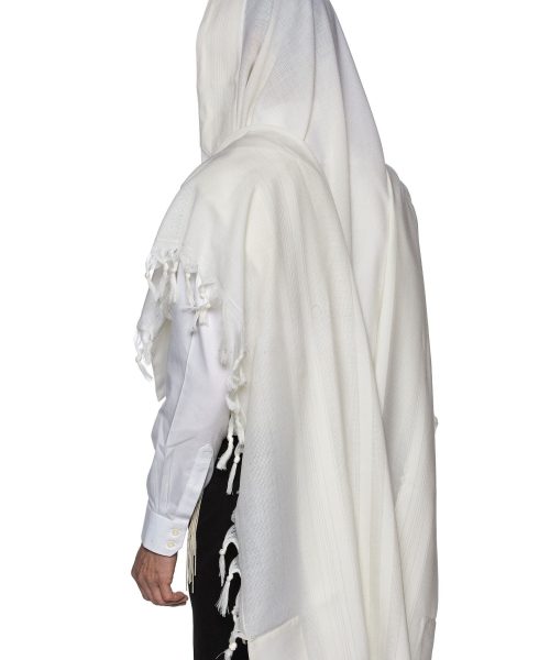 המוצר שלך: טלית צמר תשבץ פסים לבנים דגם למנצח