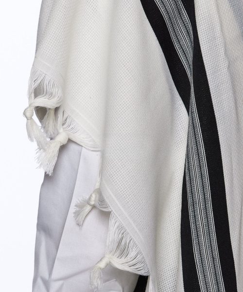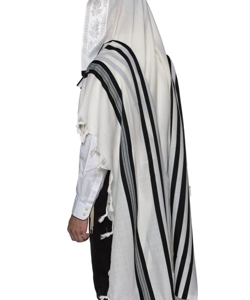 טלית צמר תשבץ פסים שחורים דגם למנצח