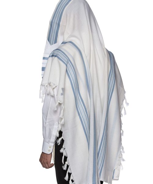 טלית צמר תשבץ פסים תכלת דגם למנצח