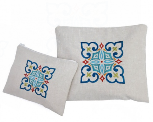 כיסוי לטלית ותפילין בעיצוב אתני עשוי בד קלטינקס איכותי, מגיע עם ניילון קשיח לשמירה מקסימלית.