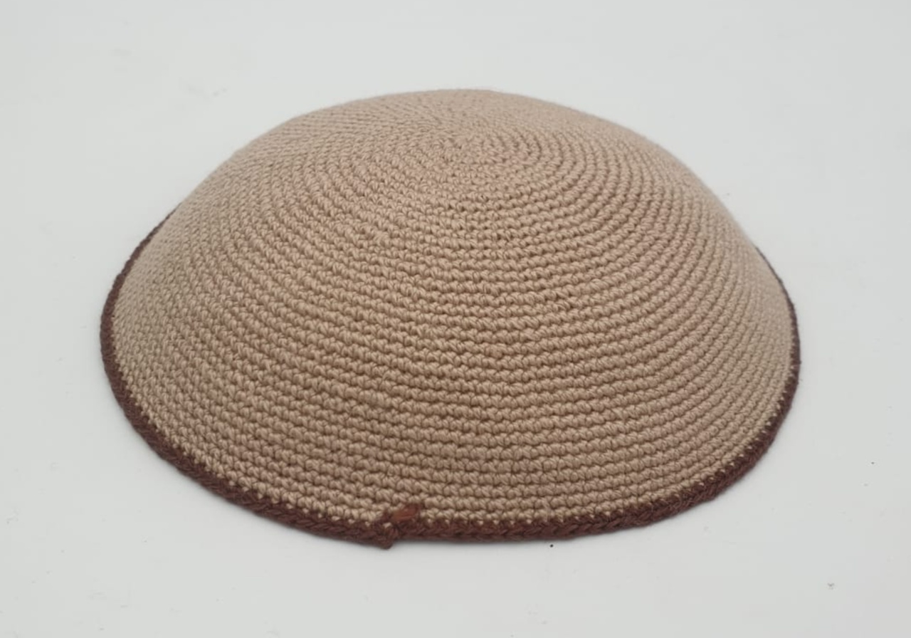 כיפה סרוגה חום בהיר פס חום
