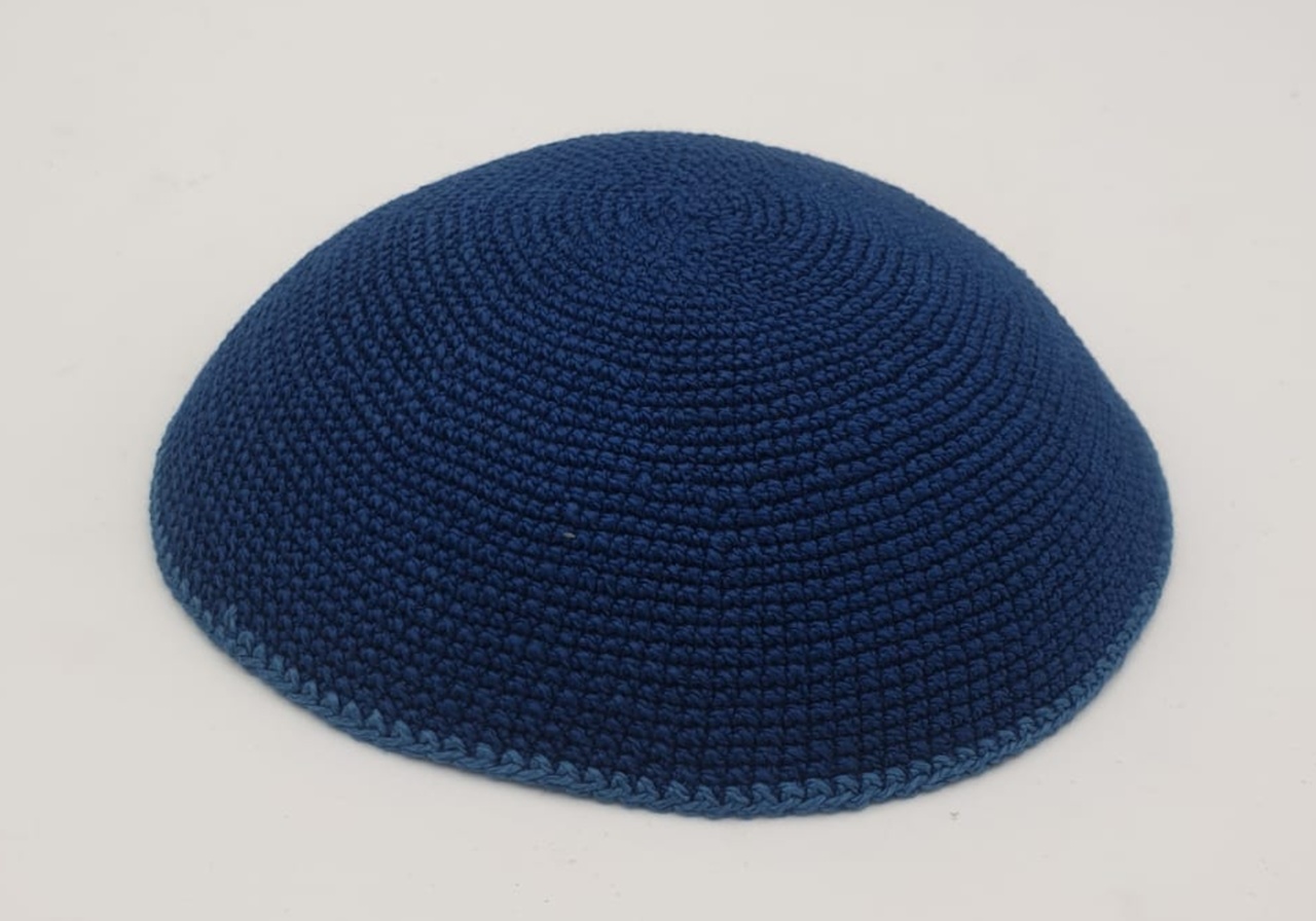 המוצר שלך: כיפה סרוגה כחול פס תכלת