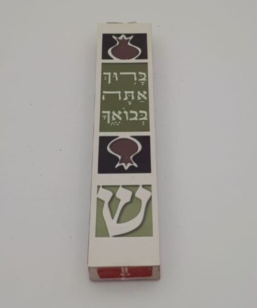 בית מזוזה מפרספקס פלקט אלומניום כיתוב "ברוך אתה בבואך.." . קיים במגוון צבעים לבחירה. בגודל: 12 ס"מ