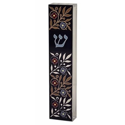 בית למזוזה אקרילי לוחית אלומיניום בהדפס עלים ופרחים. מתאים לגודל קלף: 12 ס"מ